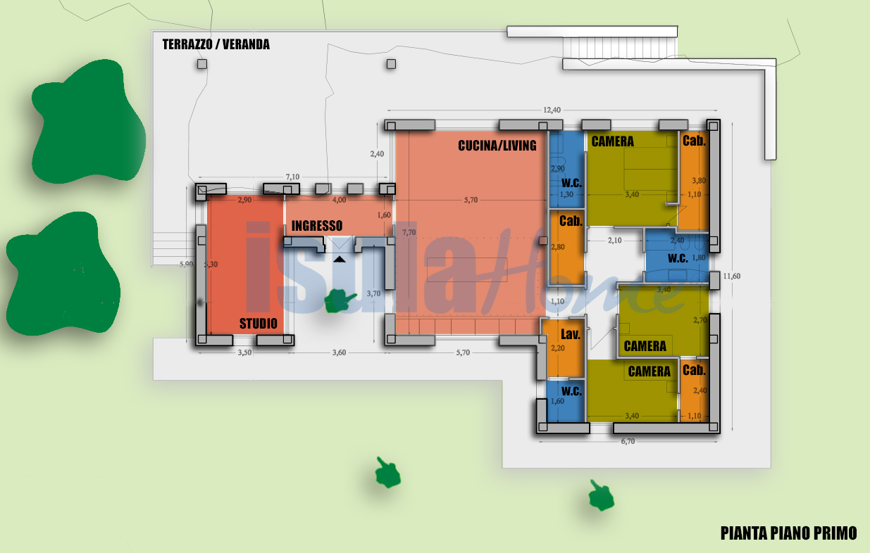 L'abitazione si svilupperà su un solo piano fuori terra, avrà forma irregolare con tre distinte aree: zona notte, zona giorno, e zona di rappresentanza, queste ultime due collegate da un corridoio e separate da un atrio scoperto. La zona notte e la zona giorno saranno coperte da tetto a falde con pendenza ortogonale a quella della zona di rappresentanza. La copertura del corridoio invece sarà piana. E' prevista da progetto l'installazione di pannelli per la produzione di energia elettrica ed altri per la produzione di acqua calda sanitaria.