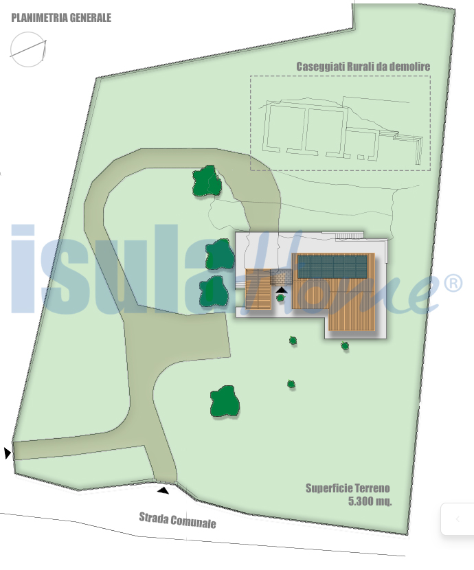 Nel progetto è prevista la realizzazione di un'abitazione unifamiliare, demolendo i fabbricati rurali esistenti e ricostruendo la volumetria, Il fabbricato in progetto sarà situato in posizione centrale rispetto alla conformazione pressappoco quadrangolare del lotto, in posizione più alta e panoramica, sfruttando i naturali terrazzamenti del lotto, mentre al livello sotto strada si svilupperanno gli spazi a garage e i locali tecnici per gli impianti e la riserva idrica.