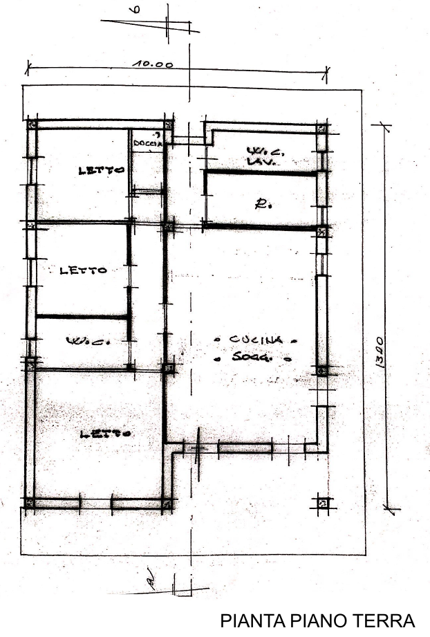 From the outside via a vehicle access ramp it is possible to reach the basement. 13x10 meters, consisting of a single room spaced out by only two central structural pillars with driveway access and high wall openings. The same is surrounded by a one meter air gap.